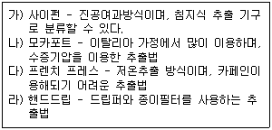 각종 커피 추출법에 대한 설명이 틀리게 짝 지어진 것은 어느 것인가?