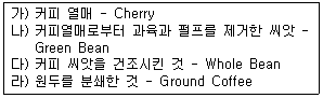 커피의 단계별 명칭을 바르게 설명하지 못한 것은 어느 것인가?