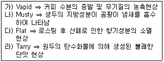 커피 향미의 종류와 생성원인에 대한 연결이 옳은 것은 어느 것인가?
