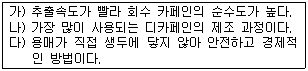다음은 디카페인 커피의 제조과정을 설명한 내용인데, 어떤 종류의 추출법을 설명한 것인가?
