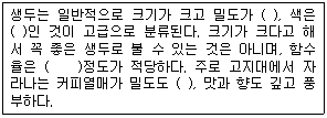 좋은 생두의 조건을 나열하면 다음과 같다. 괄호 안에 들어갈 옳은 내용은 어느것 인가?