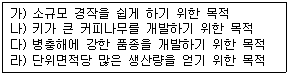 커피종자를 개량하는 목적으로 옳은 것을 묶은 것은?