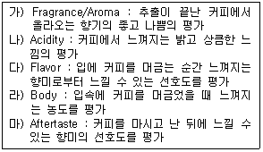 커피의 평가 용어 중 옳은 설명으로 묶인 것은?