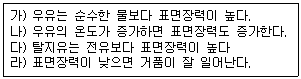 다음은 우유의 표면장력을 설명한 것이다. 옳은 내용으로 연결된 것은?