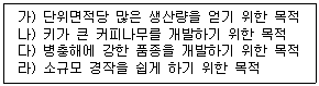 커피종자를 개량하는 목적으로 옳게 묶은 것은?