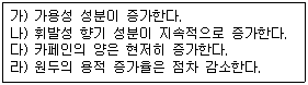 커피 로스팅 시 일어나는 변화 중 틀린 것으로 묶어놓은 것은 어느 것인가?