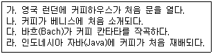 다음 커피의 역사적 사건들을 오래 된 순서로 바르게 나열한 것을 고르시오.