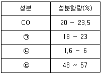 고로 가스의 성분이 다음과 같을 때, ㉠~㉢에 해당하는 가스의 명칭으로 옳은 것은?
