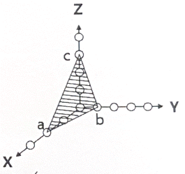 다음 그림에서 빗금 친 abc 면의 밀러 지수로 옳은 것은? (단, 모든 원의 간격은 동일하다.)