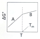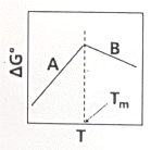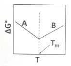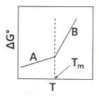 녹는점(Tm)에서 A(S)→A(L) 반응에 대해 Hom>0일 때, 다음 중 엘림강(Ellingham) 그래프가 옳게 그려진 것은? (단, A(S)+O2=AO2(S)...직선 A, A(L)+O2=AO2(S)...직선 B이고, Tm(A(S))<Tm(AO2(S))이다.)