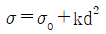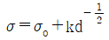 Hall-Petch식으로 옳은 것은? (단, σ는 항복응력, σo는 전위의 운동을 방해하는 마찰응력, d는 결정립의 지름, k는 상수이다.)