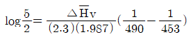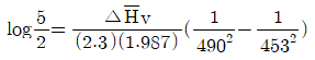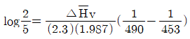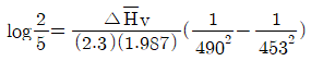 v 는 Clausius-Clapeyron 식에서 추정할 수도 있다. 어떤 증기압이 453K에서 2atm, 490K에서 5atm 일 때 이 범위에서 △