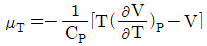 주울-톰슨(Joule-Thomson)계수 μT에 대한 표현으로 옳은 것은?