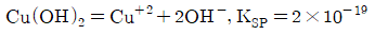 폐수 내에 포함된 고농도의 Cu+2를 pH를 조절하여 Cu(OH)2 형태로 일부 제거함으로서 Cu+2의 농도를 63.55mg/L 까지 감소시키고자 할 때, 폐수의 적절한 pH는? (단, Cu의 원자량은 63.55이다.)