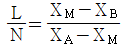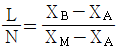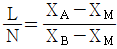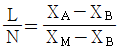 X성분의 질량분율이 X4인 수용액 L[kg]과 XB인 수용액 N[kg]을 혼합하여 XM의 질량분율을 갖는 수용액을 얻으려고 한다. L과 N의 비를 옳게 나타낸 것은?