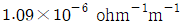 실리콘 진성반도체의 전도대(conduction band)에 존재하는 전자수가 6.8×1012/m3이며, 전자의 이동도 (mobility)는 0.19m2/Vㆍs, 가전자대(valence band)에 존재하는 정공(hole)의 이동도는 0.0425m2/Vㆍs일 때 전기전도도는 얼마인가? (단, 전자의 전하량은 1.6×10-19Coulomb 이다.)