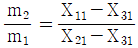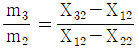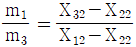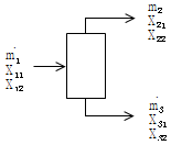 그림에서 mi는 질량유량, Xij는 흐름 i에서의 성분 j의 분율이다. 다음의 관계식 중 틀린 것은? (단, i = 1,2,3 이고 j = 1.2 이다.)