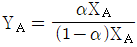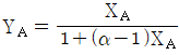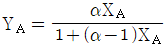 A 성분과 B 성분의 Binary system에서 기상과 액상이 평형관계에 있다고 한다면 A 성분 기상의 몰분율 YA 에 관한 일반식은? (단, α는 B성분에 대한 A성분의 휘발도이고, X는 액체의 몰분율이다.)