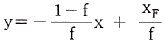 다음 방정식 중 원료공급선(feed line)은? (단, f 는 원료의 흐름 중 기화된 증기분율, y 는 기체분율, x는 액체분율 이다.)