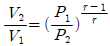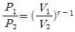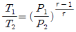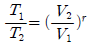 단열 과정에서의 P, V, T 관계를 옳게 나타낸 것은? (단, 비열비 r 는