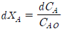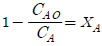 A → P의 비가역 1차 반응에서 A 의 전화율 관련식을 옳게 나타낸 것은?(단, NA0는 초기의 몰수이고 NA는 시간 t 에서 존재하는 몰수이다.)