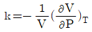 1atm, 25℃에서 물의 등온 압축률 k는 4.5×10-5(atm)-1이다. 25℃등온하에서 물의 밀도를 1%증가시키기 위해서는 약 몇 기압까지 물을 압축시켜야 하는가? (단, 압력변화에 관계없이