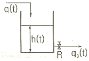 그림과 같은 액위계(liquid level system)에서 단면적은 3ft2, qo=8√hft3/min 이고 평균 조작수위 h=4ft일 때 시상수(time constant)는 얼마인가?