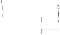 다음 그림과 같은 축소관에 물이 흐르고 있다. 1지점에서의 안지름이 0.25m, 평균유속이 2m/s일때 안지름이 125m인 2지점에서의 평균유속은 몇 m/s인가? (단, 축소에 의한 손실은 없다고 가정한다.)