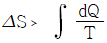 비가역과정에 있어서 다음식 중 옳은 것은? (단, S는 엔트로피 Q는 열량 T는 절대온도이다.)