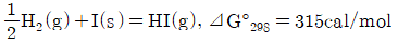 다음과 같은 반응이 진행될 때 기상에 대하여는 이상기체 법칙이 적용되고 고체 요오드가 평형으로 존재한다면, 2기압 25℃에서의 평형상수 값은 얼마인가?