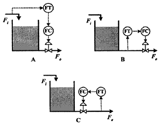 다음 그림은 피제어 변수 F0를 제어하는 3가지 제어방식을 나타낸 것이다. 제어방식이 각각 되먹임(feed back)인지 또는 앞먹임(feed forward)인지에 대한 설명으로 옳은 것은?
