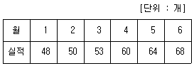 다음 [표]를 참조하여 5개월 단순이동평균법으로 7월의 수요를 예측하면 몇 개인가?