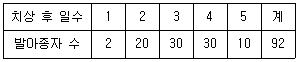 표는 무 종자 100립을 치상하여 5일 동안 발아시킨 결과이다. 발아율(發芽率), 발아세(發芽勢) 및 발아전(發芽揃) 일수(日數)는? (단, 발아세 중간조사일은 4일이다)(순서대로 발아율(%), 발아세(%), 발아전 일수)