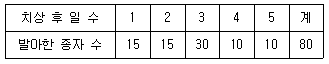 콩 종자 100립을 치상하여 5일 동안 발아시킨 결과이다. 이 실험의평균발아일수(MGT)는? (단, 소수점 첫째 자리까지만 계산한다)