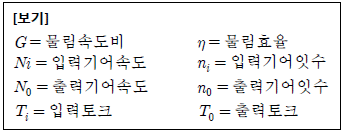 다음 중 기억식 변속기의 물림속도비 구하는 공식으로 옳은 것은? (단, 각각의 변수는 다음 [보기]를 따른다.)