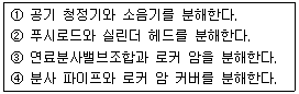 보기는 동력경운기의 실린더 헤드 분해과정의 일부이다. 부품을 분해하는 순서로 올바르게 된 것은?