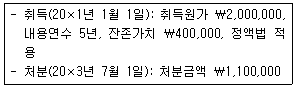 다음은 (주)한국의 기계장치 관련 내용이다. 유형자산 처분손익은? (단, 기계장치는 원가모형을 적용하고, 감가상각비는 월할계산한다.)