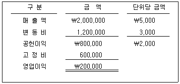 (주)한국은 단일 제품을 생산ㆍ판매하고 있으며, 20×1년 공헌이익계산서는 다음과 같다.