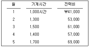 (주)한국의 20×1년 5개월 간의 기계시간과 전력비 관련 자료는 다음과 같다.