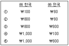 (주)한국은 (주)민국과 매출액의 10%를 판매수수료로 지급하는 위탁판매계약을 맺고 있으며, (주)민국에게 적송한 재화의 통제권은 (주)한국이 계속 보유하고 있다. 20×1년에 (주)한국은 (주)민국에 단위당 원가 ₩90인 상품A 10개를 적송하였으며, (주)민국은 상품A 8개를 단위당 ₩100에 고객에게 판매하였다. 상품A의 판매와 관련하여 (주)한국과 (주)민국이 20×1년에 인식할 수익 금액은?