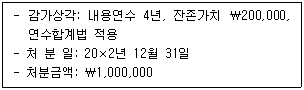 (주)한국은 20×1년 7월 1일 공장 내 기계장치를 ₩2,000,000에 취득하였다. 동 기계장치의 감가상각 및 처분과 관련한 내용은 다음과 같다. 유형자산 처분손익은? (단, 기계장치는 원가모형을 적용하고, 감가상각비는 월할 계산한다.)