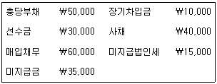 (주)한국의 20×1년 말 부채와 관련된 자료가 다음과 같을 때, 20×1년 말 금융부채는?