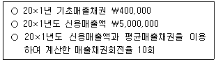 (주)한국의 다음 자료를 이용하여 계산한 20×1년 기말 재무상태표상 매출채권은? (단, 매출채권의 손상차손은 없다.)