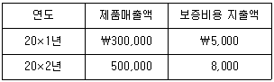 (주)한국은 20×1년 4월 1일부터 제품을 판매하기 시작하면서, 제품매출액의 2%에 해당하는 금액을 제품보증비용(보증기간 2년)으로 추정하였다. 20×1년과 20×2년의 제품매출액과 보증비용 지출액이 다음과 같을 때, 제품보증과 관련하여 20×2년 말 재무상태표에 인식할 충당부채는? (단, 제품보증은 확신유형보증이다.)