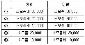 (주)한국은 기중에 소모품을 ₩100,000에 구입하였으며, 기말 현재 남아 있는 소모품은 ₩90,000이다. 수정전시산표상 소모품 잔액이 ₩120,000인 경우 기말 수정분개로 옳은 것은?
