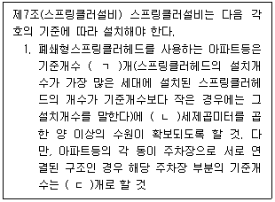 공동주택의 화재안전성능기준상 스프링클러설비 설치기준의 일부이다. ( )에 들어갈 내용으로 옳은 것은?