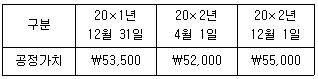(주)한국은 20×1년 7월 1일에 주식A를 취득일의 공정가치인 ₩50,000에 취득하고 기타포괄손익-공정가치측정 금융자산으로 분류하였다. (주)한국은 20×2년 4월 1일에 주식A와 관련하여 ₩1,000의 현금배당금을 수령하였고, 20×2년 12월 1일에 주식A를 ₩55,000에 전량 매각하였다. 주식A의 공정가치가 다음과 같을 때, 주식 A와 관련된 회계처리가 (주)한국의 20×2년도 당기순이익에 미치는 영향은? (단, 주식매매수수료는 없다.)