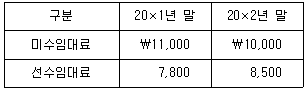 20×1년과 20×2년 말 미수임대료와 선수임대료 잔액이 다음과 같을 때, 20×2년 중 현금으로 수취한 임대료가 ₩118,000이라면, 20×2년 포괄손익계산서에 표시될 임대료는?
