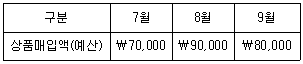 (주)한국은 상품매매업을 영위하고 있다. 20×1년 3분기의 상품매입예산은 다음과 같다.