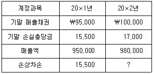 (주)한국은 모든 매출거래를 매출채권 증가로 처리한다. 20×1년과 20×2년 중 회수불능이 확정되어 제거된 매출채권은 없으며, 회수불능으로 회계처리했던 매출채권을 현금으로 회수한 내역도 없을 때, 다음 중 옳지 않은 것은?